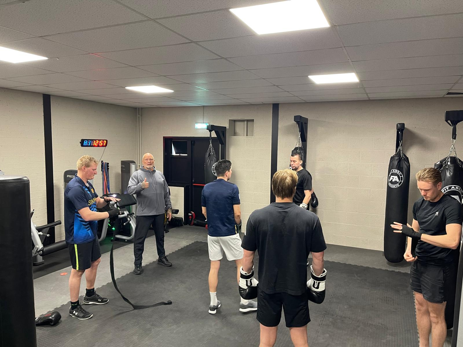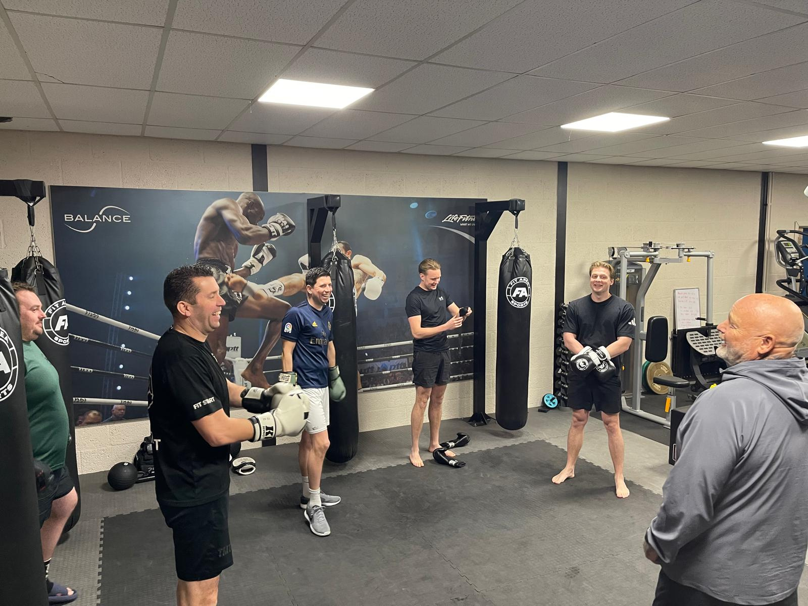 De kopers van het kickboksen bij Fit Area Sport begonnen het nieuwe jaar goed. Anderhalf uur rammen, zweten en afzien met Robér, René, Elle en Bram. Uiteraard werden zij hierna verwend in Sportcafé Zwaag met eten en drinken. De volgende dagen zal er spierpijn zijn maar dat is het waard!